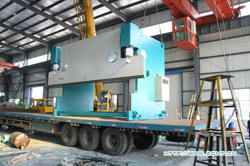 由于機器體積較大,高度超過3.5米,重量在50噸以上,所以采用了分體式運輸,工作臺與機器主體分離開來。這種大型機床由于其體積與重量的關(guān)系,并不是很常見,需求量相對來講少點,而對制造商的要求也相對比較高,其中無不體現(xiàn)中德產(chǎn)品在客戶心目中認(rèn)可度!