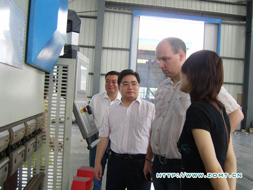 在中德公司領(lǐng)導(dǎo)的陪同下,尼爾森先生來到了我們的車間。尼爾森先生尤其關(guān)注數(shù)控類機(jī)床,對數(shù)控機(jī)床成品都一一細(xì)細(xì)查看。在正在生產(chǎn)中的大型數(shù)控雙機(jī)聯(lián)動折彎機(jī)前,尼爾森表現(xiàn)出了極大的興趣,認(rèn)真的向負(fù)責(zé)人了解機(jī)器的情況。在大型裝配車間,尼爾森一行對中德車間的管理布局及環(huán)境表示了贊揚(yáng),雖然天氣很熱,干凈整潔的車間環(huán)境讓他們輕松地進(jìn)行參觀。另外,負(fù)責(zé)人還向他們介紹了產(chǎn)品設(shè)計(jì)方面的一些小細(xì)節(jié)如夾塊、T型槽等等,這些細(xì)節(jié)體現(xiàn)出了中德產(chǎn)品使客戶在使用產(chǎn)品過程中將會得到極大的便利。